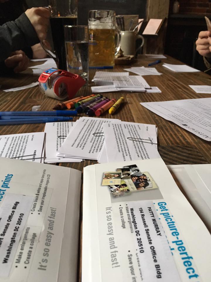 Write your representatives about an issue you care about. Prompts will be available. Send as many cards as you like as long as you donate postage. You don’t have to commit to staying long, just writing a postcard.