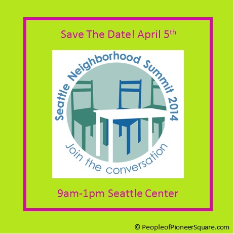Fill out their online survey to let them know what you would like to get out of the Seattle Neighborhood Summit and what is important to your neighborhood. To learn more about the Seattle Neighborhood Summit, check back here regularly. You can also email SNS2014@seattle.gov or call Kathy Nyland at 206.684.8069.